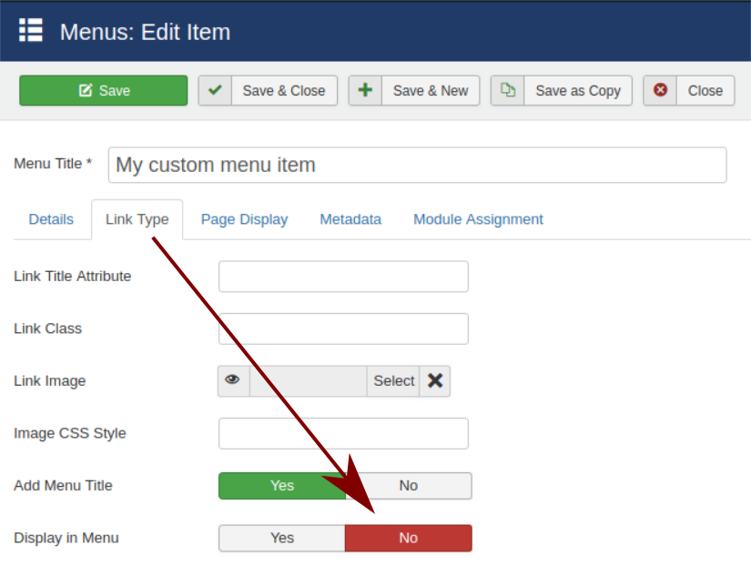 Step 5) Enter the Menu Title (1) and save it. In the field Alias (2) you can enter whatever you want, this will not be shown in the address. The Menu Item Type - Menu Item Alias displays always the original address from the target menu item.