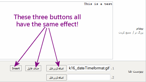 "Add File", "Remove File" and "Insert" Button do same thing in my kunena! all of them open the dialog to choose a file, I've had this problem since the beta 1.6 and it's still present.