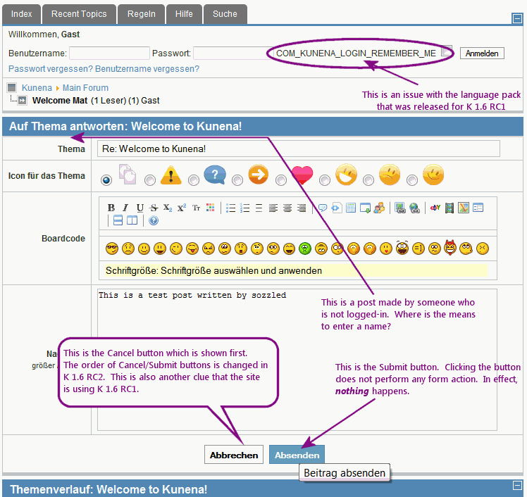 Question K 1.6 RC1: Submit button does not work for public posts