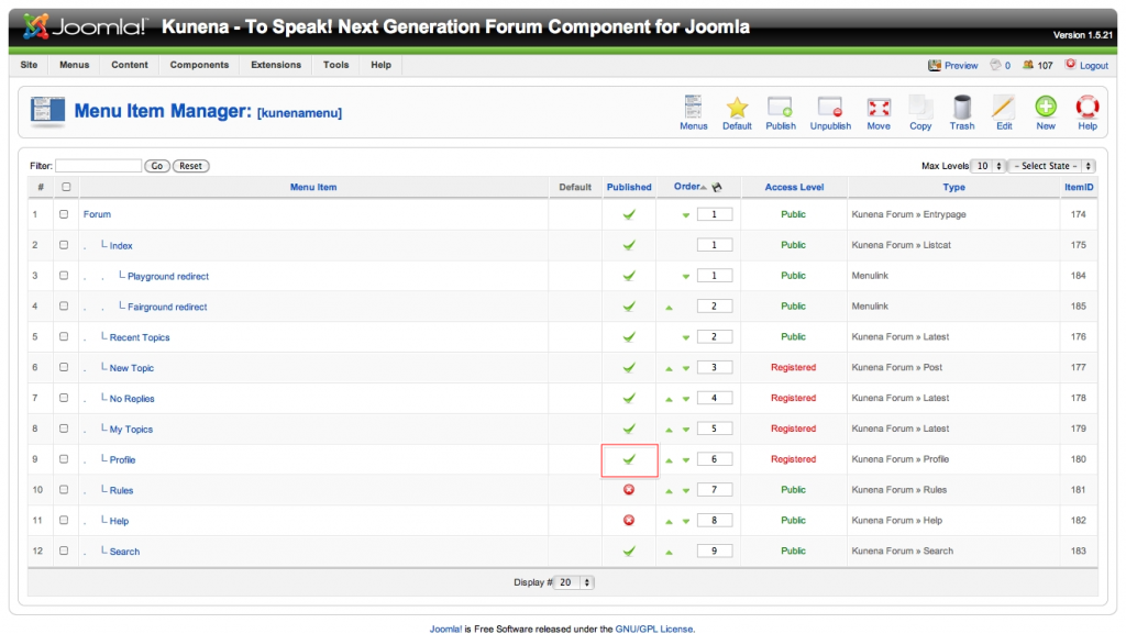 haithun wrote: That was exactly the tab I was not referring to. The real Joomla! menus in Kunena 1.6 are clear since you discribed it to me in the support forum.