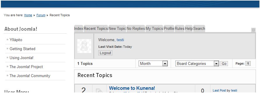 Have Joomla 1.6 and installed Kunena Latest module 1.6.2. I´m using default template.