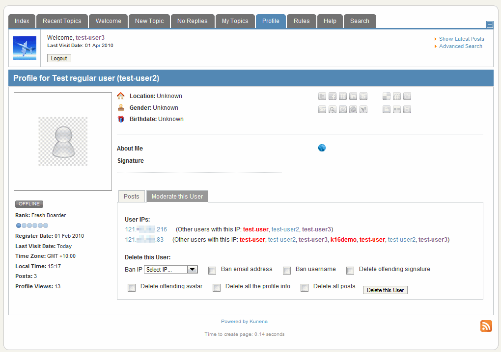 Replied by sozzled on topic Re: Kunena 1.6 - a moderator's view of moderating users