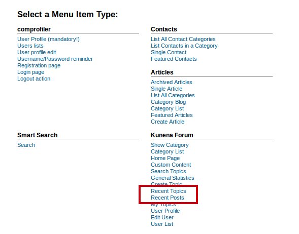 The Menu Item "Recent Posts" shows unapproved topics and messages.