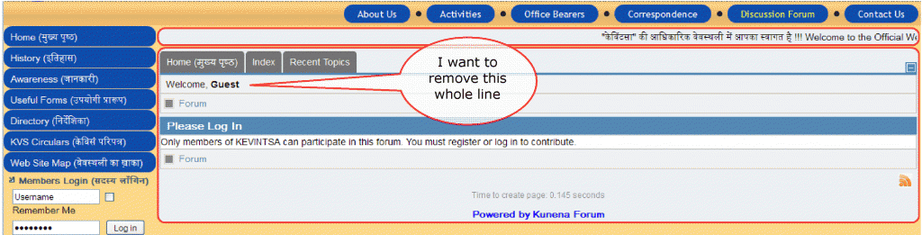 I want to remove the welcome message :-