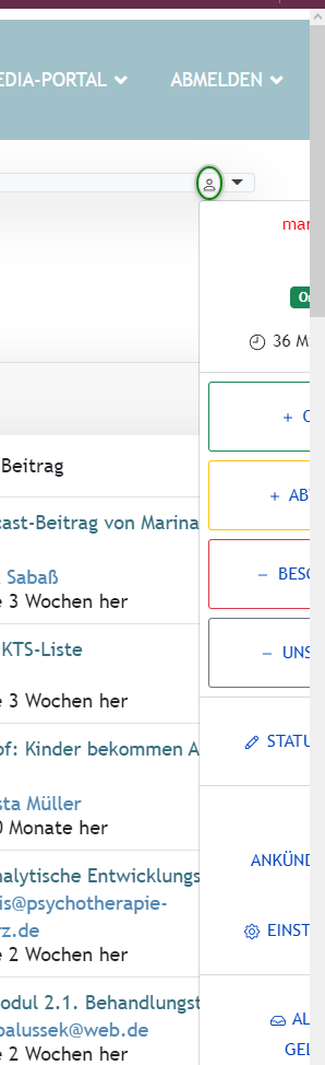 2. if I click o user menu (maybe wrong name, it is the drop down in the right top corner) the drop down menu opens outside of the screen (see img user menu)