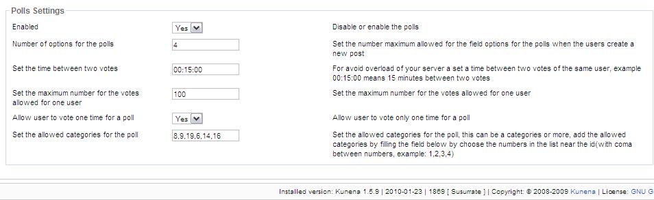 Replied by artnoris on topic Re:Hack poll v0.3.2 for Kunena 1.5.9 and 1.0.11
