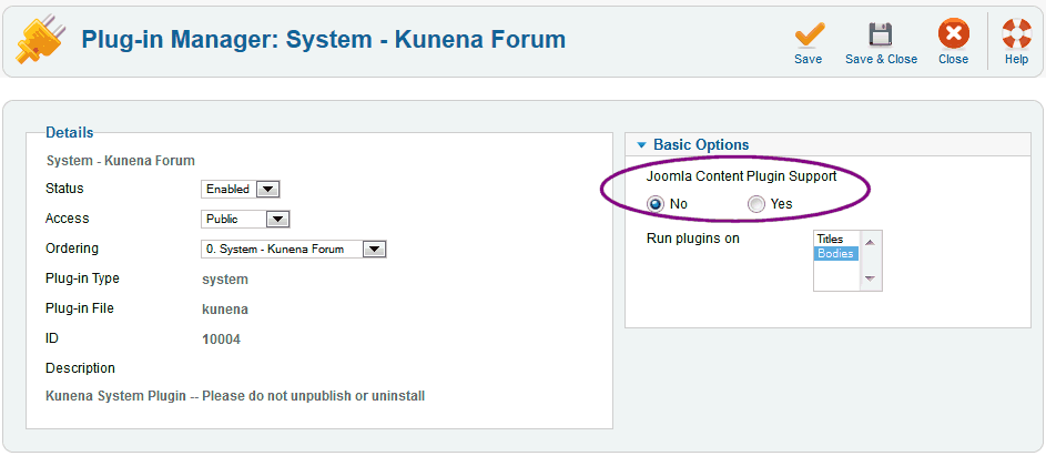 Joomla Content Plugin Support to yes
