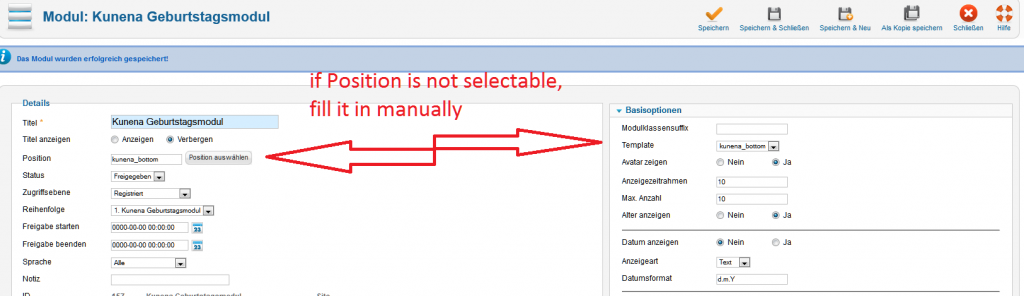 Would this lines make it easier? github.com/svanschu/mod_sw_kbirthday_J16...the-bottom-of-kunena