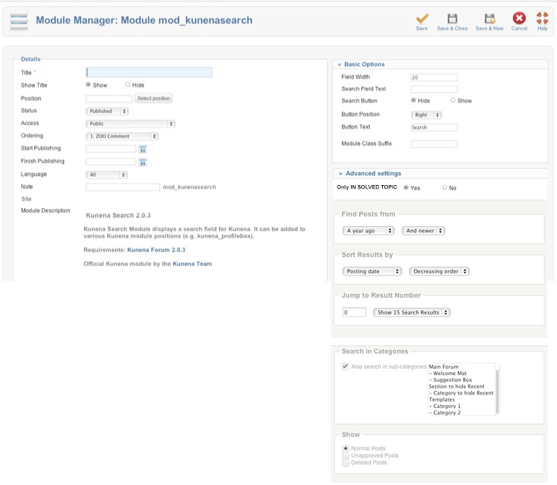 Needed configuration Kunena module "Search":