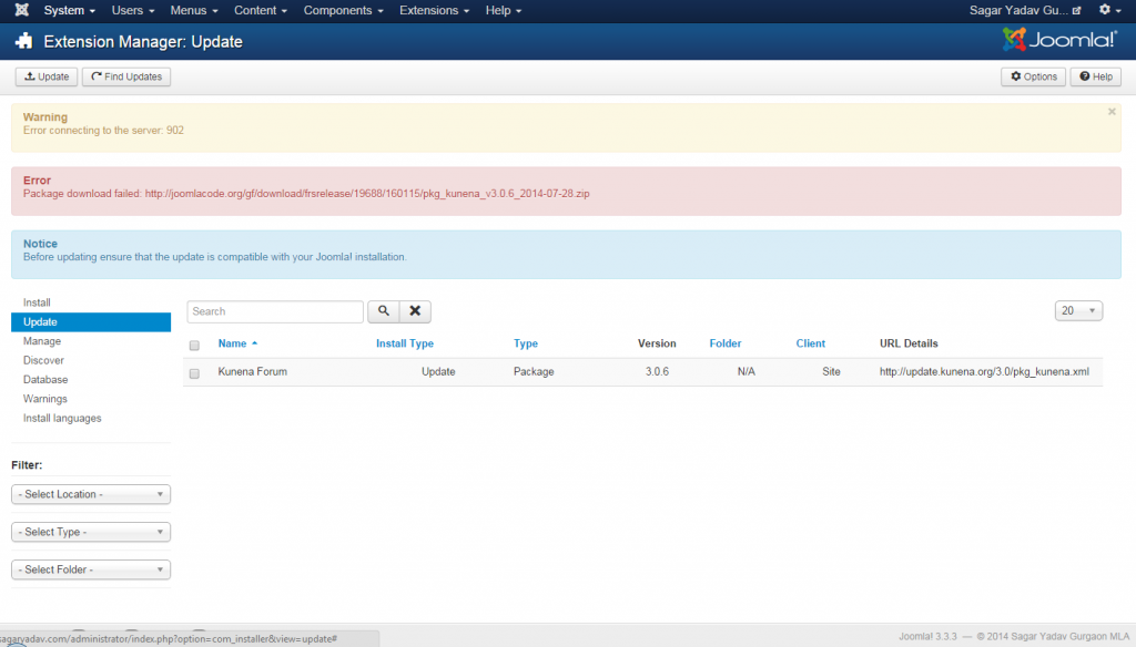 Question Kunena 3.0.6 update fails from 3.0.1 with Joomla 3.3.3 from extensions manager