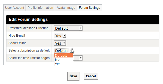 frontend - kunena - profile - Subscriptions tab.