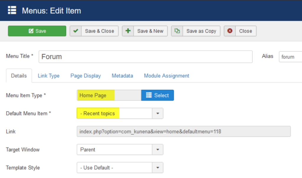 Question Menu [home page] Default Menu Item choose [Recent topics] different