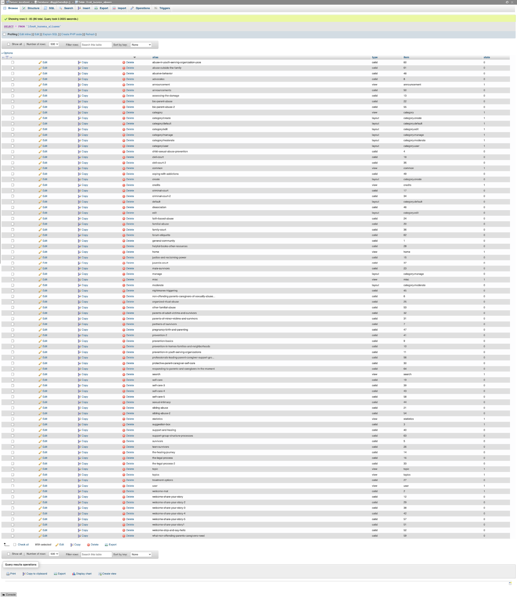 <blockquote><cite>Leen post=222145 userid=16746</cite><div>Hi,also check with phpmyadmin your `xxxxx_kunena_aliases` or there are no strange or duplicate things in it.so compare with alias that are in the xxxxx_kunena_categories` I once had that myself and after removing the wrong categories it worked again.</div></blockquote>