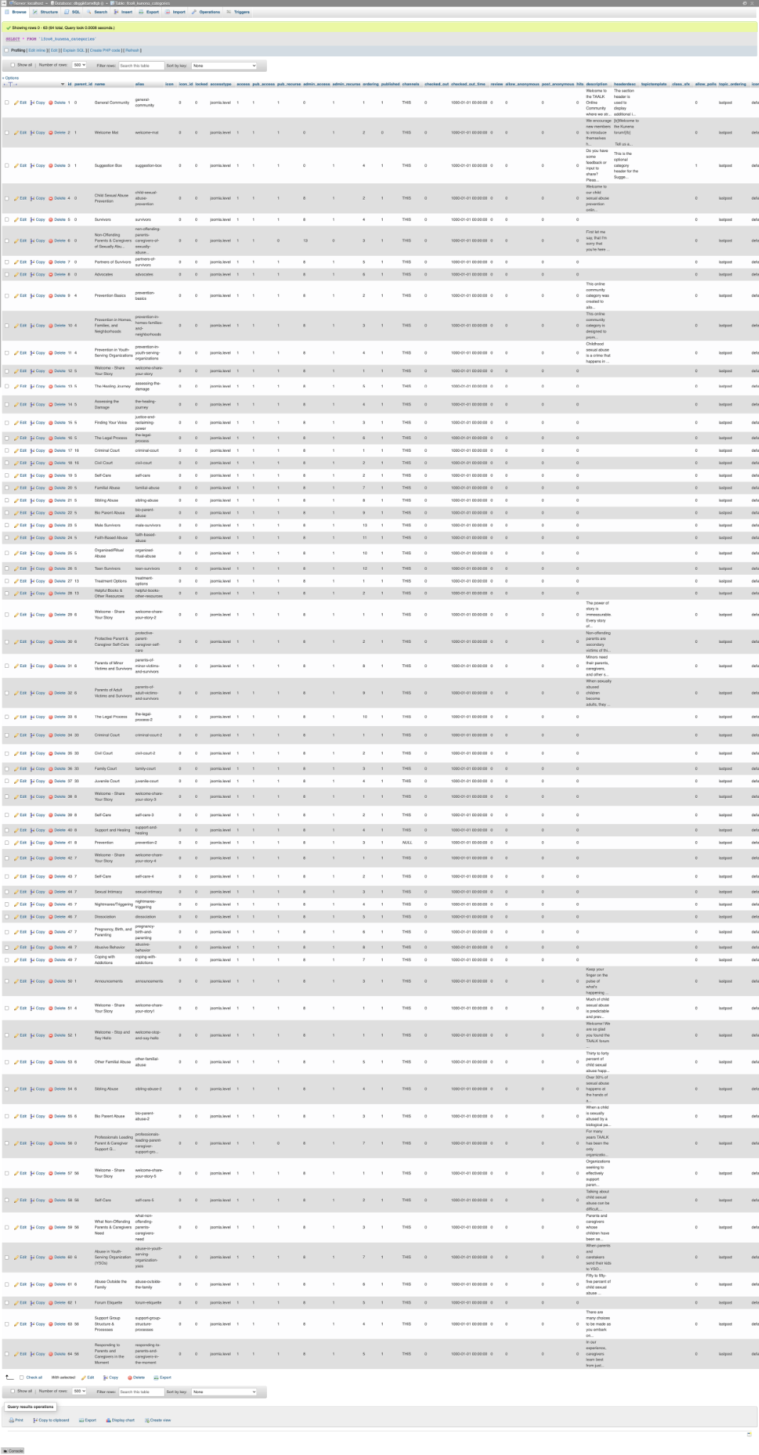 Now first export and save all the kunena data tables from the old database.