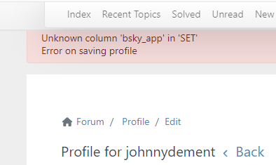 Replied by johnnydement on topic Can't edit profile due Bsky