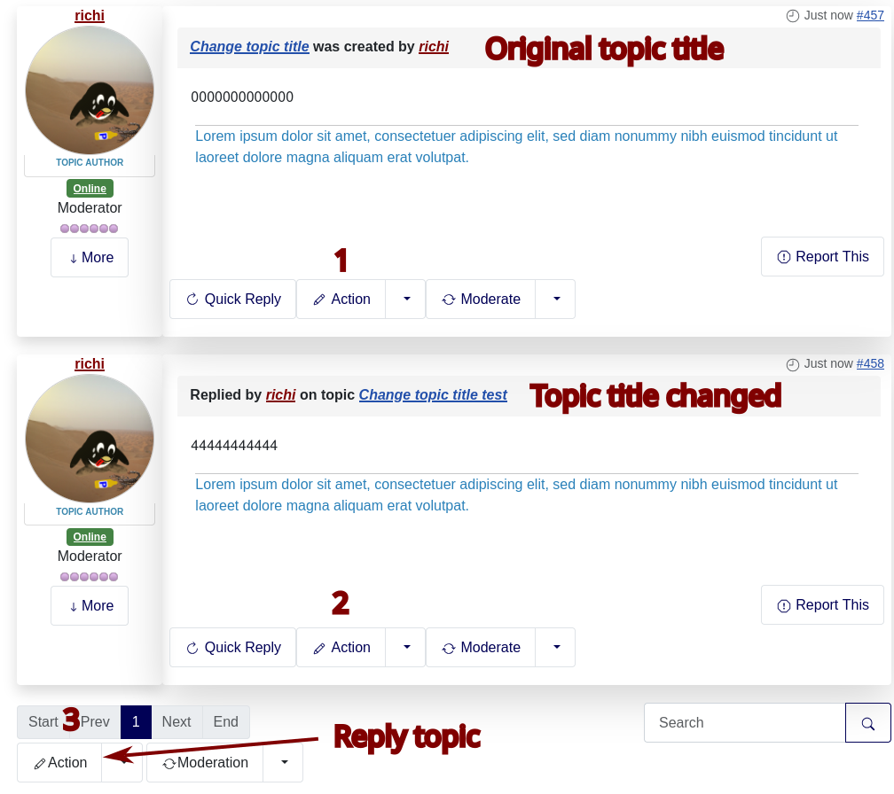 In the post Test 4, I changed the title. Immediately, the topic title changed to Test 4.