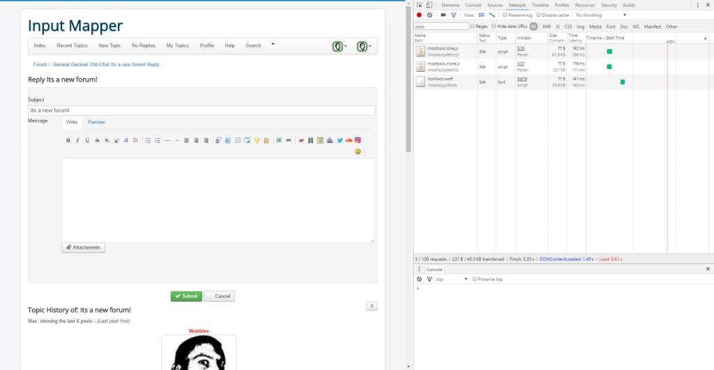 Sorry but it is, and it looks to be the editor as it only loads when using the full reply and the editor is visible, even protostar did this, but again, its the POST that is slow, not GET, moo tools nor any other js library loads during the post as it is just PHP and DB, so can we get past the runaround with the libraries and start looking at what could be slowing it down in a large DB possibly?