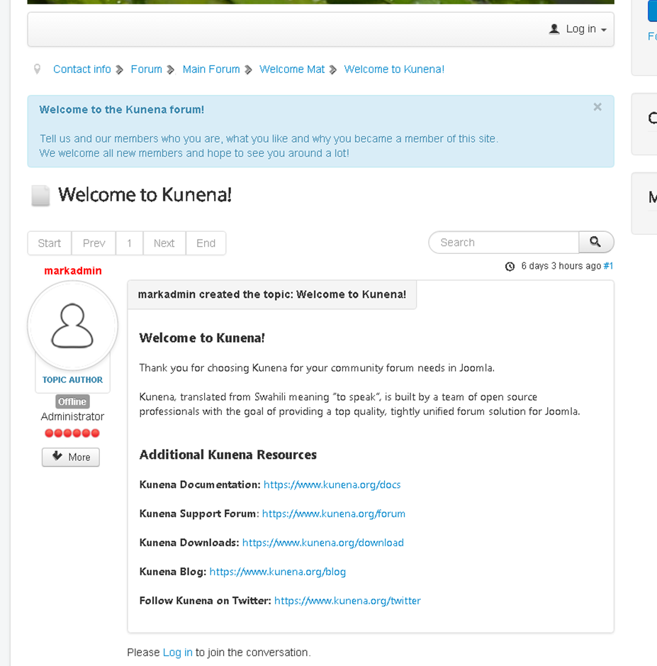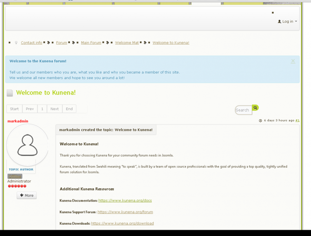 Kunena menu details: