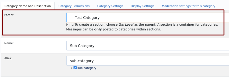 But you can still move the categories. Click on this category and select the section you want to move it to as the parent area (see image).