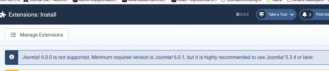 Joomla! 6.0.0 is not supported. The minimum required version is Joomla! 6.0.1, but it is highly recommended to use Joomla! 5.3.4 or later.