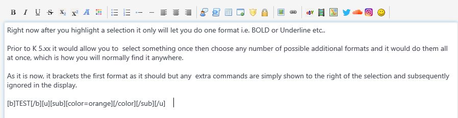 As it is now, it brackets the first format as it should but then un-highlights the selection so the following commands are simply shown to the right of the selection and subsequently ignored in the display.